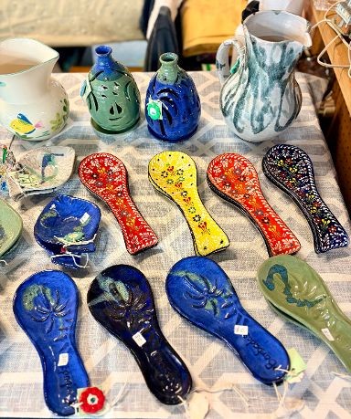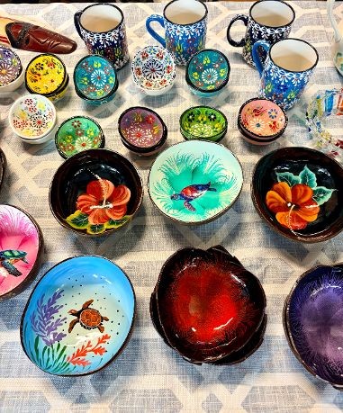 Hand weaved straw baskets, ceramic pottery & wood carvings.